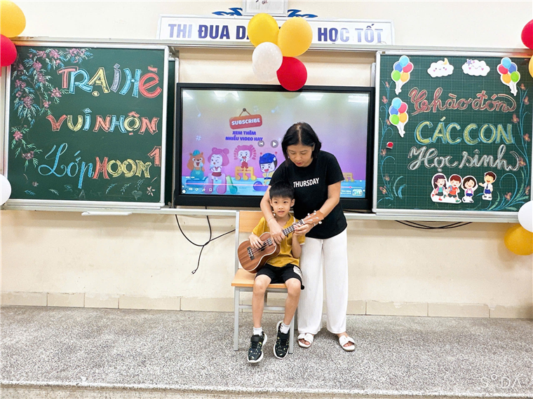 Không khí lớp học luôn rộn ràng với tiếng đàn, tiếng hát và những điệu nhảy ngộ nghĩnh.Các bạn học sinh được học hát các bài thiếu nhi vui tươi, tập nhảy theo nhạc hiện đại, và mạnh dạn đứng biểu diễn trước lớp – từ đó phát triển khả năng cảm thụ âm nhạc, nhịp điệu và tự tin thể hiện bản thân.