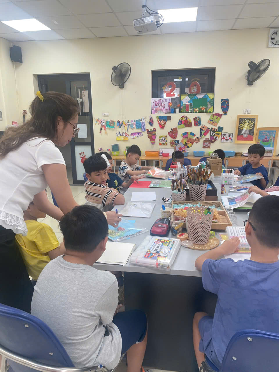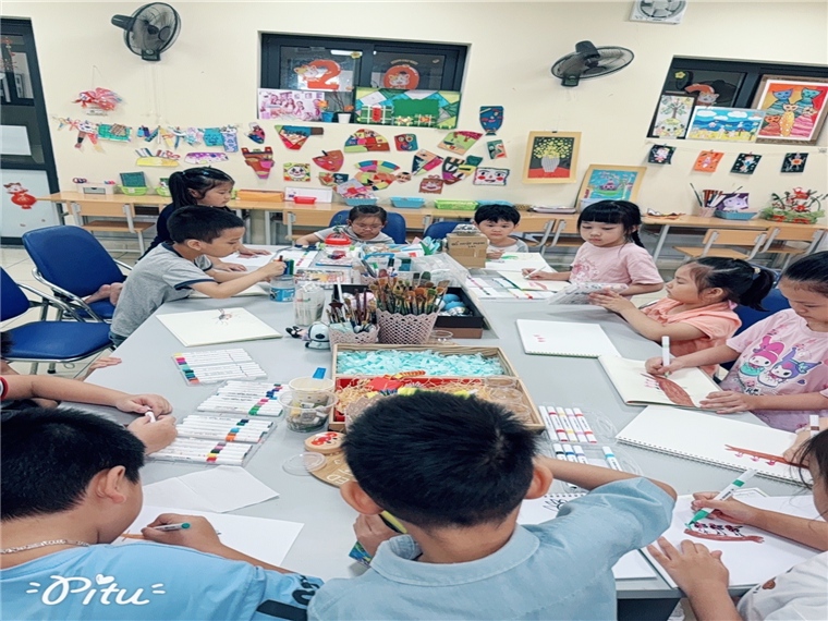 Trong những tiết học mỹ thuật, các bạn nhỏ được thỏa sức sáng tạo qua các hoạt động vẽ theo chủ đề, tô màu tự do, vẽ theo nhạc. Bé học cách nhận biết hình khối, phối màu, và đặc biệt là biết diễn đạt cảm xúc qua từng bức tranh. Mỗi tác phẩm đều là một câu chuyện ngọt ngào – nơi bé thể hiện ước mơ, tình cảm và góc nhìn hồn nhiên về thế giới xung quanh.