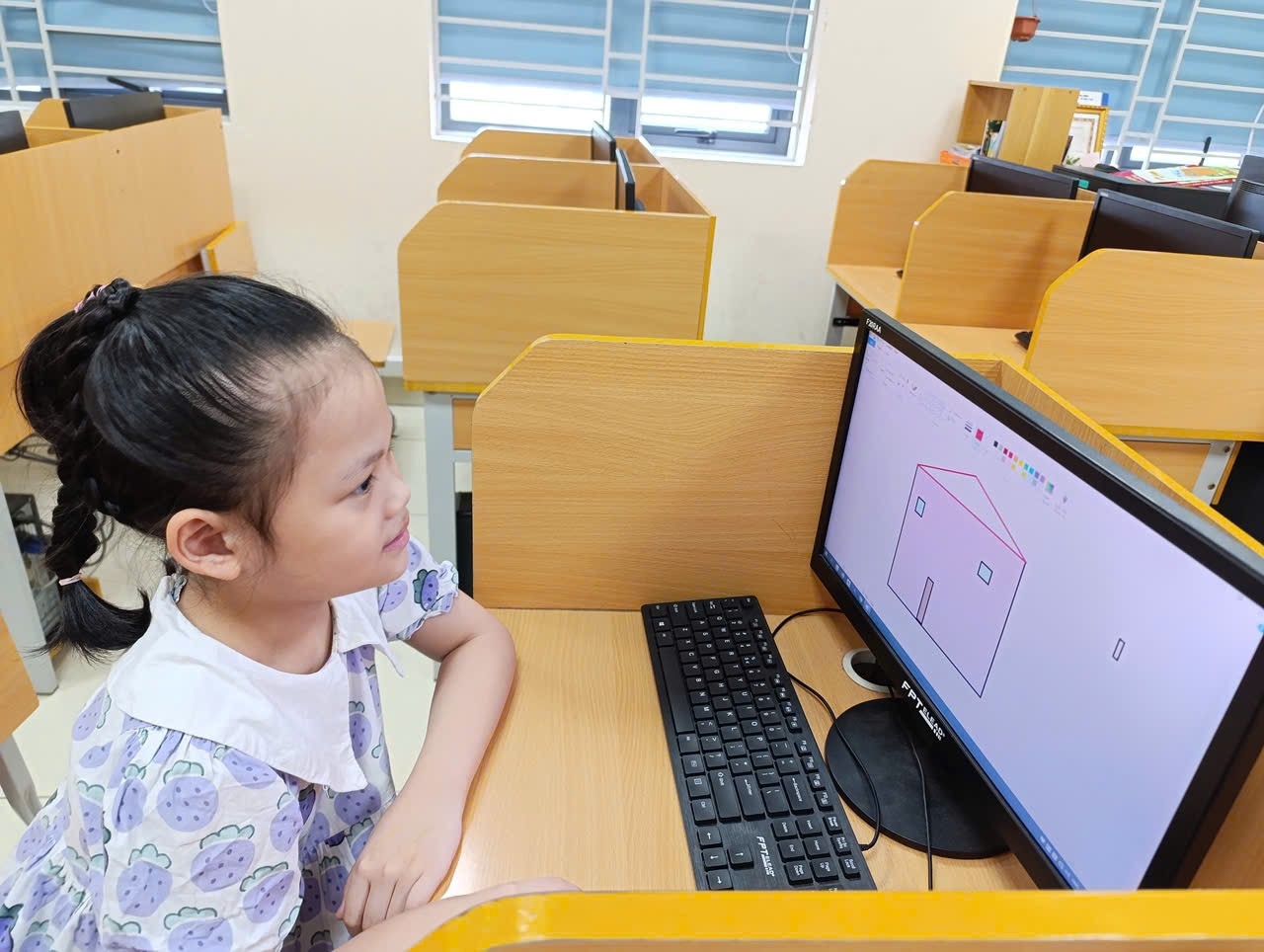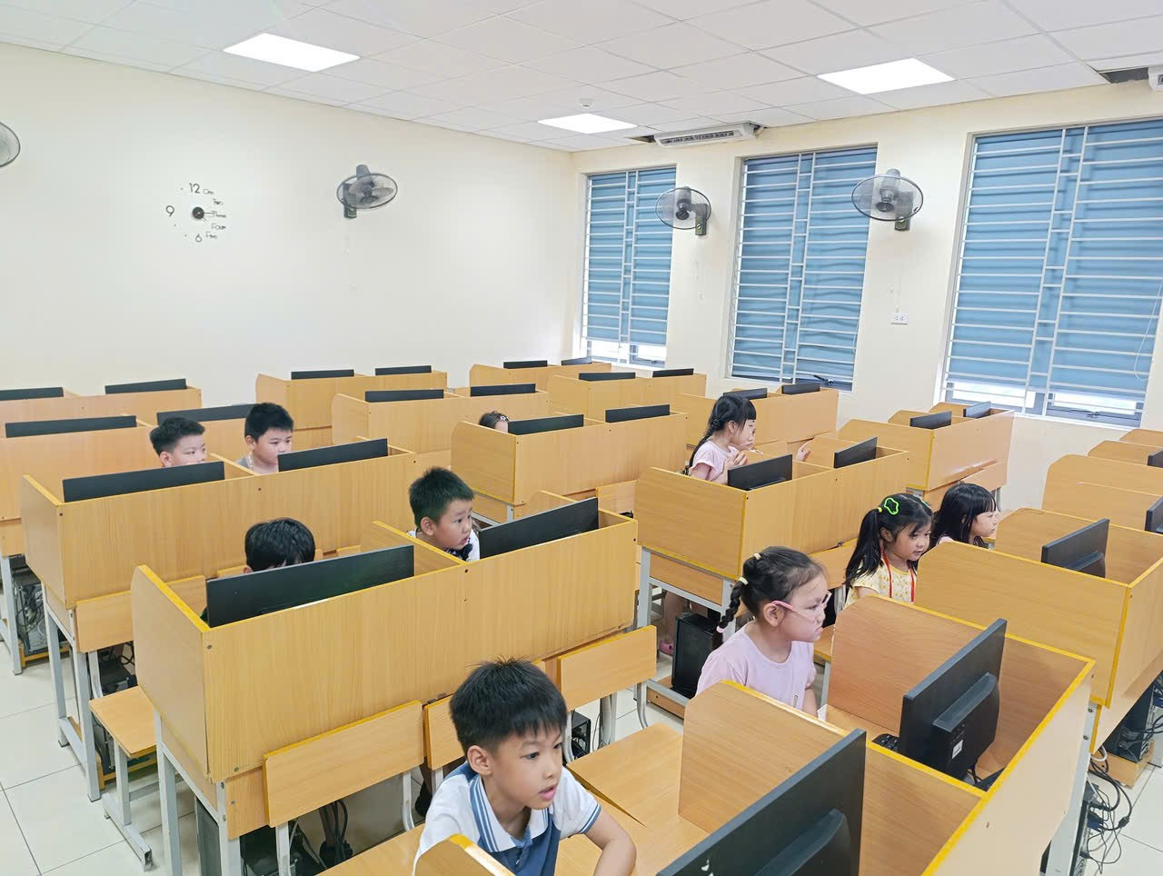 Lần đầu làm quen với máy tính, các bạn học sinh đã vô cùng thích thú khi được học cách khởi động máy, nhận biết các bộ phận như màn hình, chuột, bàn phím, và đặc biệt là luyện kỹ năng rê chuột, bấm chọn, gõ phím đơn giản.Thông qua các phần mềm học tập trực quan và trò chơi tương tác, các con không chỉ được rèn sự nhanh nhẹn, chính xác mà còn bắt đầu hình thành kỹ năng công nghệ cần thiết cho thời đại mới – một khởi đầu nhẹ nhàng nhưng đầy hứng khởi trên con đường học tập hiện đại.