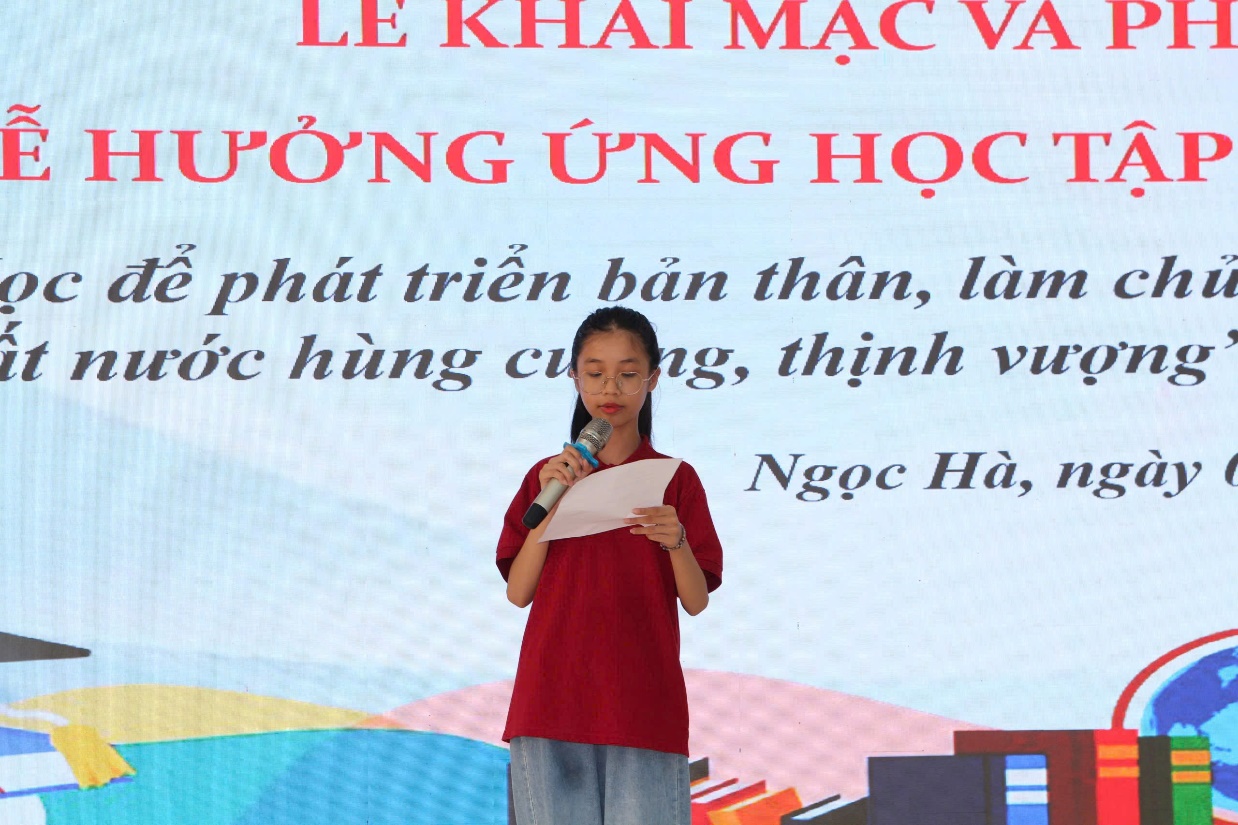 Tiếp nối chương trình, cô Phạm Thị Loan, Bí thư Chi đoàn trường, đã có bài phát biểu nhấn mạnh vai trò tiên phong của thế hệ trẻ trong việc lan tỏa và truyền cảm hứng về tinh thần học tập không ngừng. Đại diện cho học sinh khối 5, em Phạm Thanh Thảo cũng đã phát biểu hưởng ứng, thể hiện sự quyết tâm và hoài bão của thế hệ măng non trong việc rèn luyện, học tập để trở thành những công dân ưu tú, đóng góp vào sự phát triển của đất nước.